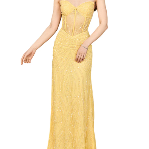 Lara Beaded Corset Prom Dress with Slit